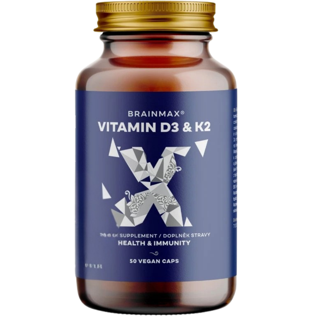 ✅ BrainMax Vitamin D3 + K2 (50 kapslí) – Pro pevnost kostí.